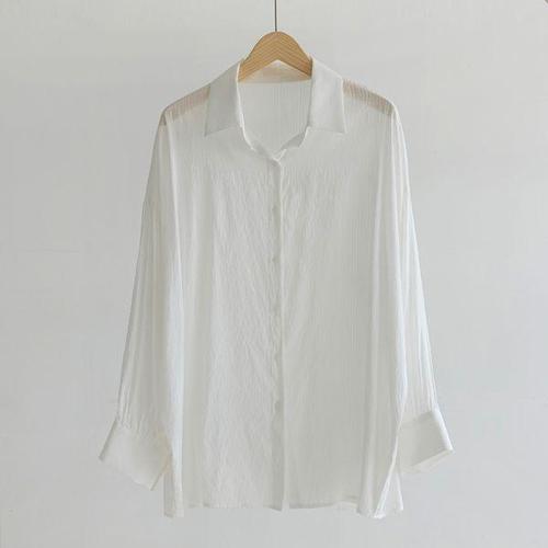 화이트 베이직 오버사이즈 버튼업 셔츠 여성 여름 코튼 오피스룩 루즈 블라우스 여성 옐로우 셔츠 긴팔
