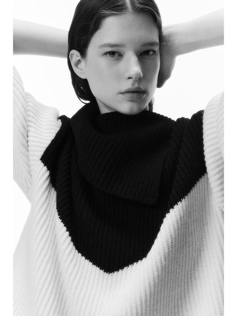 [에이치엔엠] 어시메트릭 칼라 울 스웨터 블랙/화이트 1278103001
