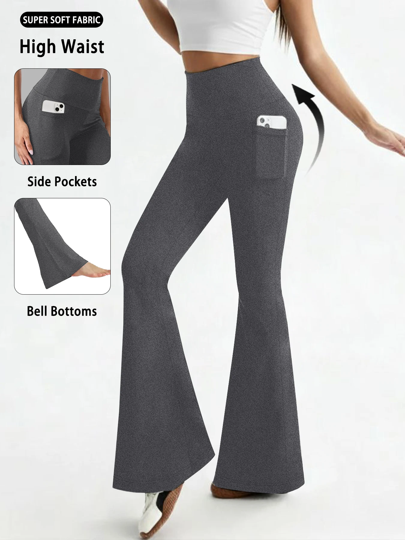 여성용 슈퍼 소프트 플레어 팬츠, 포켓 포함, 하이웨이스트 뱃살 보정 운동 요가 푸쉬업 짐 피트니스 레깅스 벨바텀
