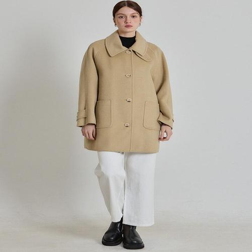 [르오트]볼륨감있는 빅카라 울90프로 원버튼 루즈핏 하프코트_P417756826
