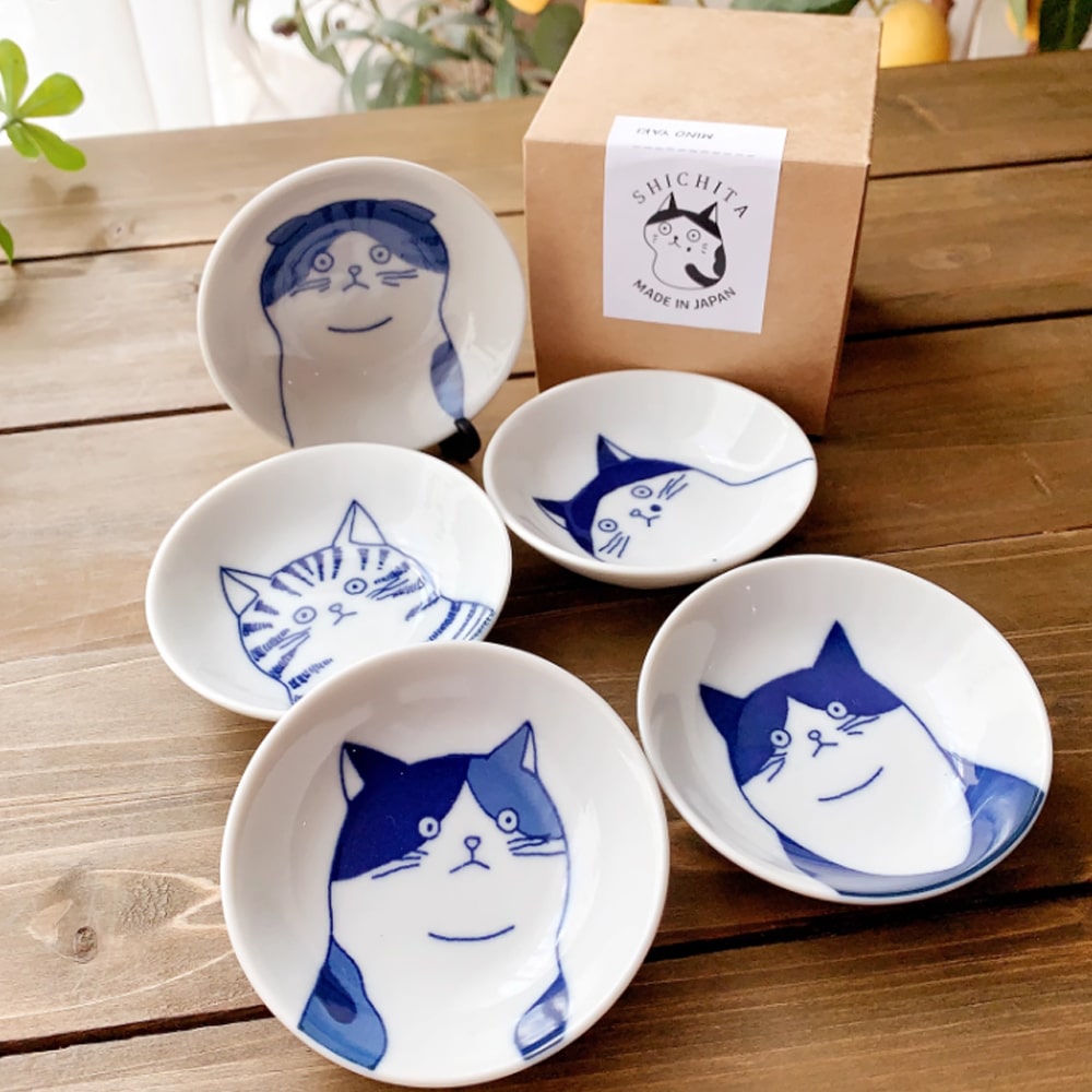 시치타 고양이 접시 14cm 일본그릇 간장종지 소스볼 도자기 미니 반찬 작은