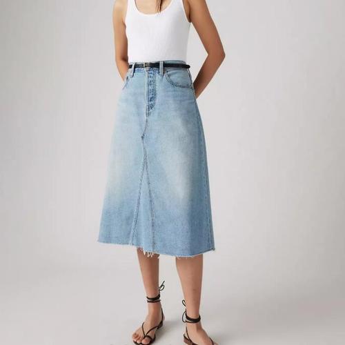 25 FW 리바이스 여성 블루 앵클 컬럼 데님 미디 스커트 241099F092007