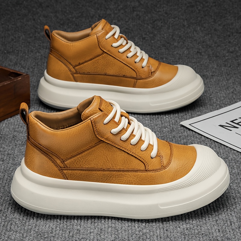 TEMU 남성용 키높이 통굽 하이탑 스니커즈 - 고강도 PVC 솔, 레이스업 발목신발, 캐주얼, 아웃도어, 데일리웨어용 - 사계절용 운동화 키높이신발|남자운동화