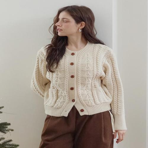 [미라클세븐]여성 트위스트 리본 포인트 꽈배기 니트 가디건