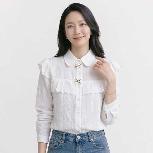 부루앤쥬디 여성용 리본레이스단 면 블라우스 BOSCBL516B