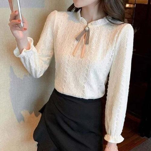 [셀럽하우스]리본 UMRQ7193 포인트 레이스 여자 화이트 블라우스