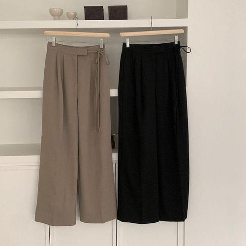 [옷자락]여성 가을 하객용 리본스트링 와이드 슬랙스 투핀턱