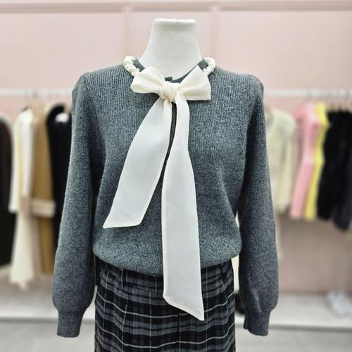 [샤틴]리본진주 장식 하이넥 니트 S244B954A13_JK