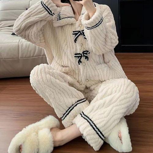 여성 리본 코랄플리스 겨울 수면 잠옷 세트 WON-WSET-WFL6NBI