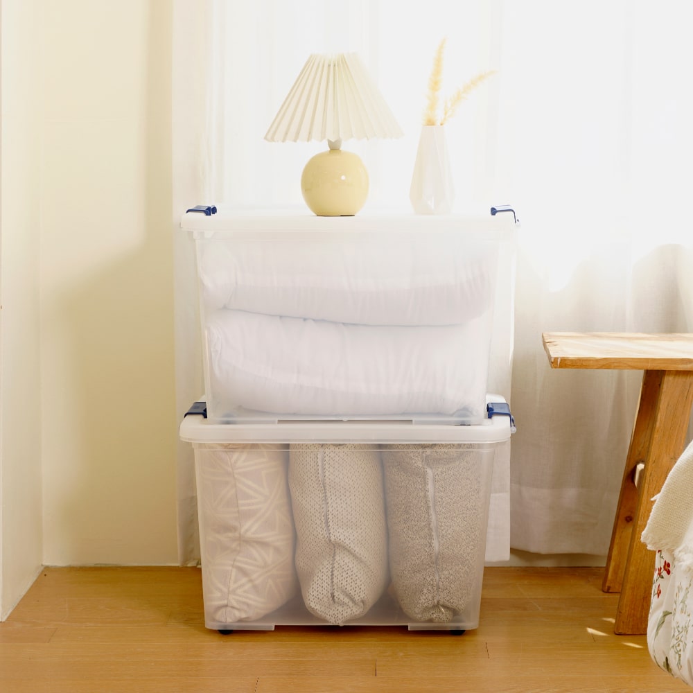습기 강한 5중 밀폐 리빙박스 적층형 대형 대용량 이불 정리 수납함 60L