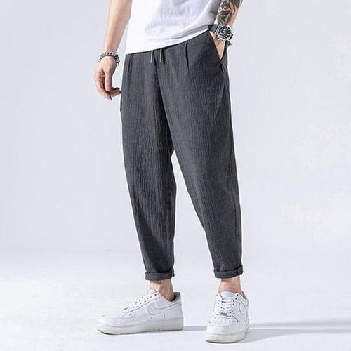 [셀러허브_여성트랜드패션]Rly 배기 통 바지 남자 허리 밴딩 린넨 9부 팬츠