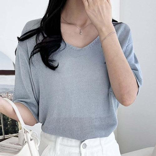 [셀럽하우스]린넨 EFLC7651 여성 반팔 니트 루즈핏 여자 반팔티 니트티 5색
