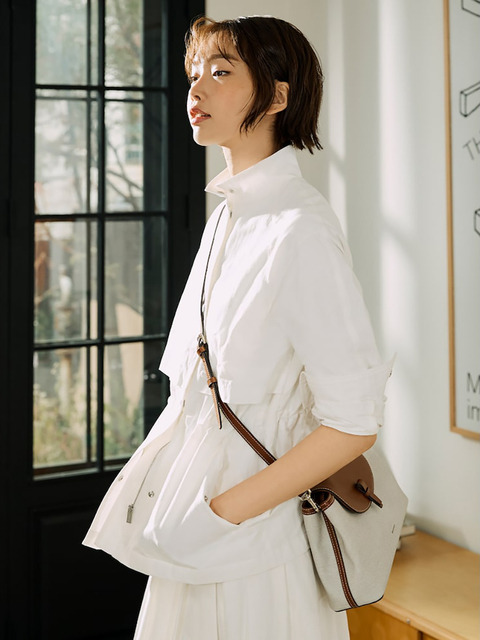 [빈폴레이디스] 리넨 혼방 스탠드넥 사파리 점퍼화이트 (BF5339C021)
