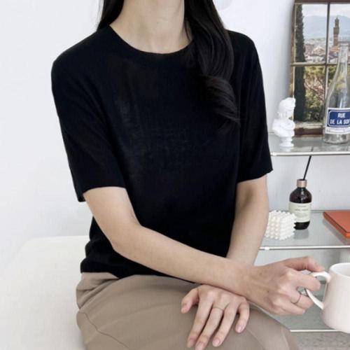여성 린넨 여름 라운드 반팔 니트 캐주얼 티셔츠 (WFHTFL2)
