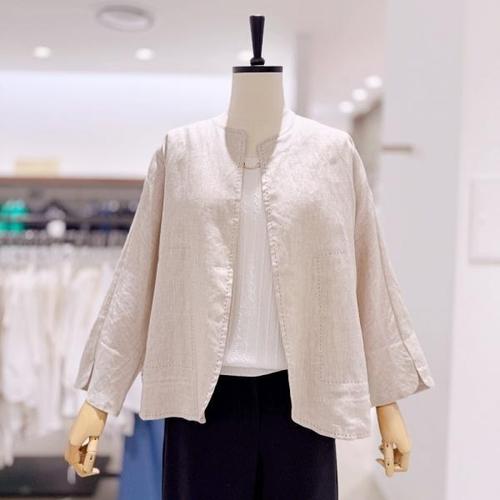 [BZHJK6LN_51]여성 여름자켓 노카라 면 반팔 린넨자켓