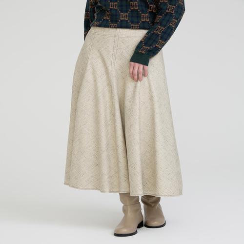 닥스 여성 베이지 멜란지 스티치 울&린넨혼방 롱 플레어스커트 (DLSK5A109I1)