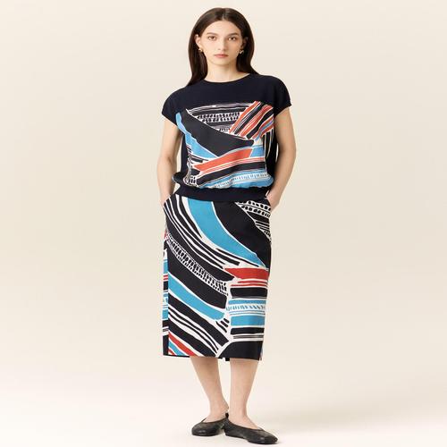 닥스 여성 블루 시즌 패턴 린넨혼방 밴딩 롱스커트 (DLSK5B301B2)