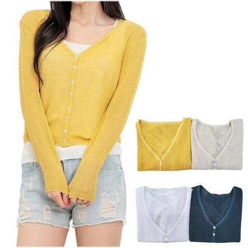 [엄지척]여자여름가디건 1P 골지 긴팔 린넨 니트 가디건_19791666_667501