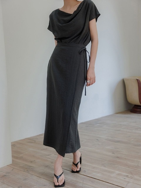 레일라 포인 언발란스 랩 셔링 반팔 원피스 S250711SM-7