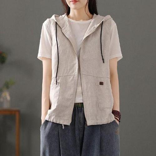 [모노무드]모노무드 여름용 후드 베스트 여성 린넨 조끼 기본 외투 다용도 아이템