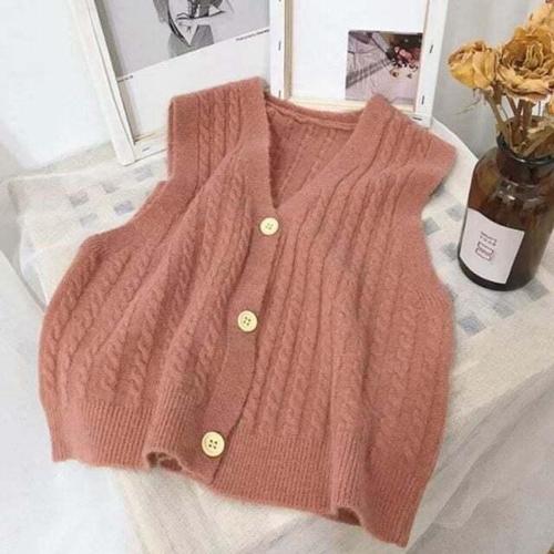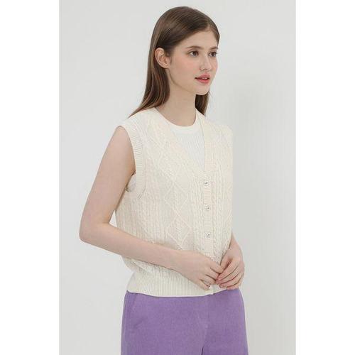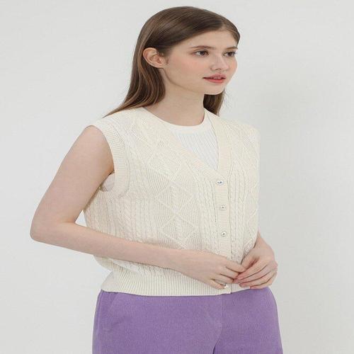 온미올렛 여성 케이블 꽈배기 브이넥 니트 조끼