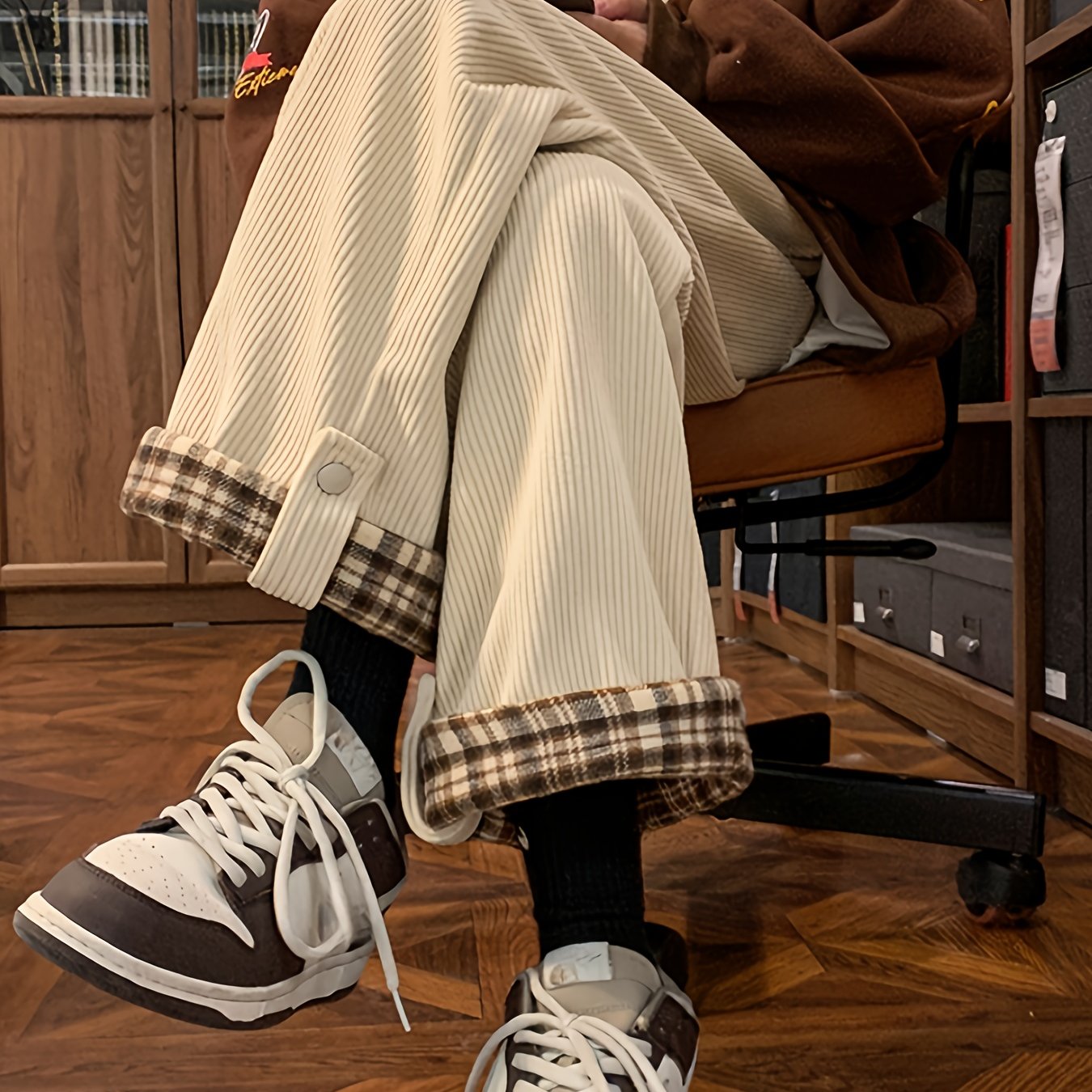 TEMU 여성용 코듀로이 팬츠 겨울용 따뜻한 스트레이트핏 바지 - 코듀로이 코듀로이(지퍼 없음) 클로저 - 중간 신축성 세탁기 사용 가능 캐주얼 팬츠, 가을/겨울 레이어링, 청바지 & 스웨터 코디 - 코듀로이 팬츠