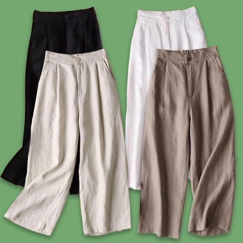 여성 편한 여름 린넨와이드 뒷밴딩 9부 팬츠 ouG4+4GCl