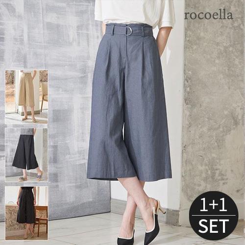 로코엘라 하랑 린넨 블렌디드 핀턱 와이드 큐롯 팬츠 1+1