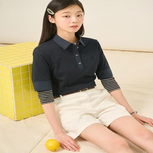 [빈폴레이디스]리넨 혼방 반소매 T칼라 티셔츠 - 네이비 (BF5342C72R)