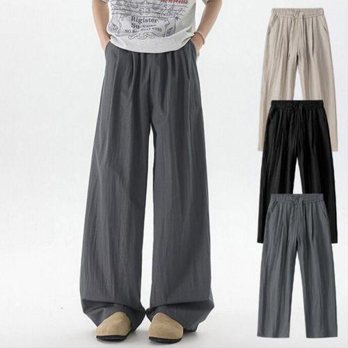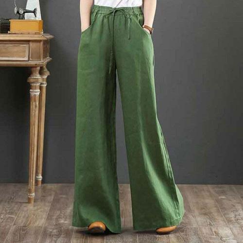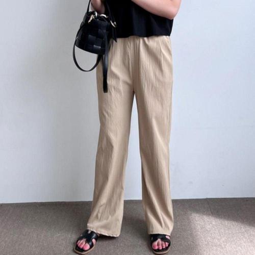 린넨 와이드 팬츠 통바지 여름 하이웨스트 밴딩 바지 여성 루즈핏 WFN067I