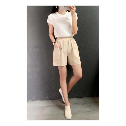 [옷자락] 여자 데일리 캐주얼 편안한 하이웨이스트 린넨 반바지