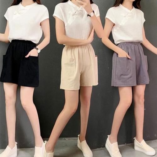 [XB7J2IO3]린넨팬츠 여성 여름 반바지 하이웨스트 5부바지