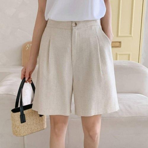 여성 여름 린넨 반바지 와이드 슬랙스 하이웨스트 숏 팬츠 데일리룩 WFN05MS