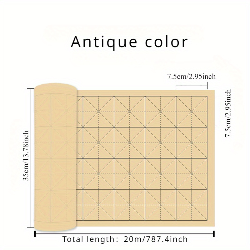 TEMU 20m/787.402인치 두께의 격자 선이 있는 캘리그라피 연습용 쌀 종이 - 붓펜 캘리그라피 및 미술 작품 제작을 위한 반숙 쌀 종이|캘리그라피