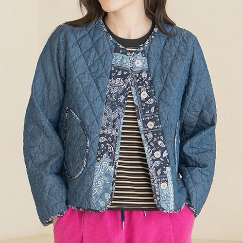 엄마옷 마담4060 내추럴포엠 데님누빔노카라자켓-QJK2601004-