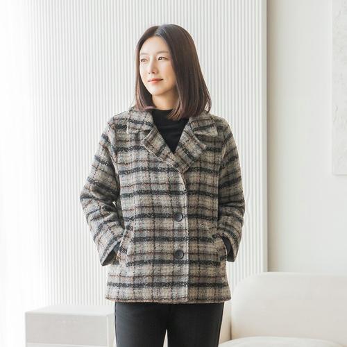 엄마옷 마담4060 모던베이직 도라울체크숏누빔자켓-QJK2511024-