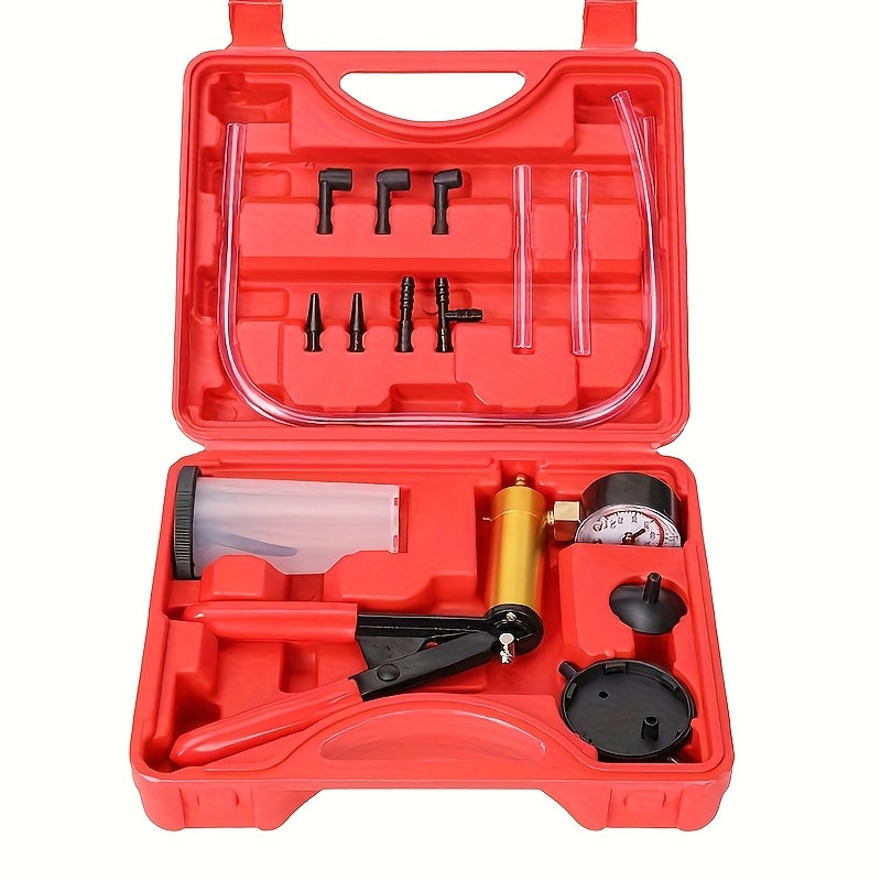 TEMU 자동차용 핸드 헬드 블리딩 키트, 보호 케이스 포함, 원맨 클러치 블리딩 시스템, 휴대용 내구성 진공 펌프 테스터 세트, 수동 진공 압력 펌프, 진공 게이지 포함