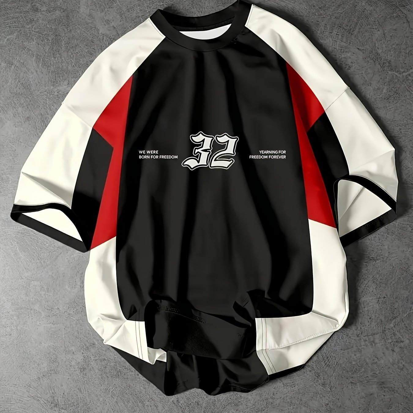 TEMU 남성용 캐주얼 3D 프린트 '32' 레전드 그래픽 티셔츠 - 투톤 컬러 블록 디자인, 통기성 좋은 편안한 원단, 레귤러 핏 반팔 라운드넥 티, 기계 세탁 가능, 대형 사이즈 제공, 사계절용 의류