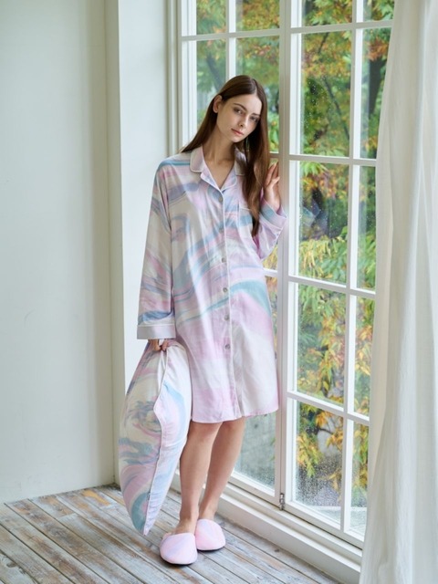 [컨투어송] 핑크 마블 파자마 셔츠 원피스