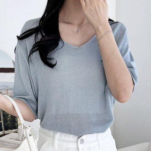 [모노무드]MNO 마소재 걸스반소매 울탑 캐주얼 넉넉핏 걸 숏슬리브 니트셔츠 5색