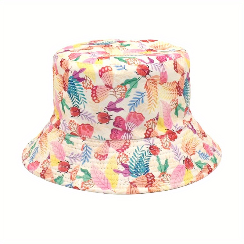 TEMU 여성용 가벼운 플로럴 & 나비 프린트 낚시 모자 - 조절 가능한 스냅 클로저, 통기성 아웃도어 여행, 해변, 캐주얼 웨어, 휴가 액세서리, 축제 헤드웨어