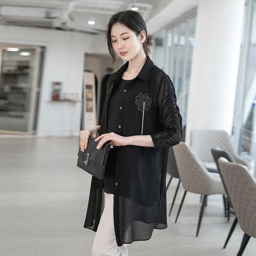 [모슬린]엄마옷 장미 쉬폰 카라 롱자켓 MQG126373 마담 미시 중년여성 빅사이즈 할머니옷 50대 60대 70대