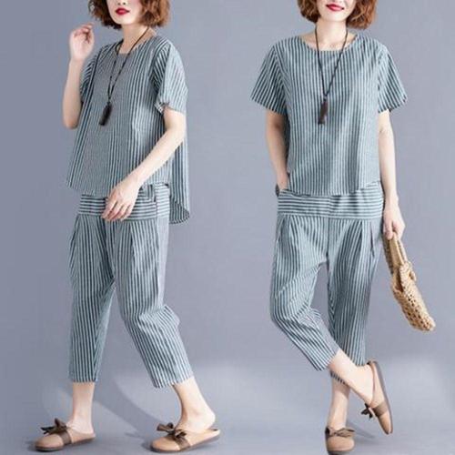 S98590 줄무늬 시원 면 마 바지투피스 원피스 WFL8D80