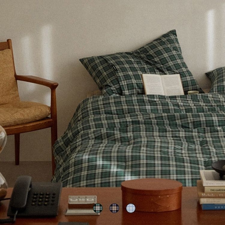 노튼클래식 40수 순면 빈티지체크 옥수수솜 차렵이불세트 SS/Q/K 3color