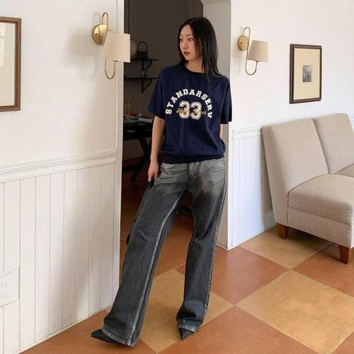 [다잇템]여성 필기체 레이온 U넥 마원단 코튼 티셔츠