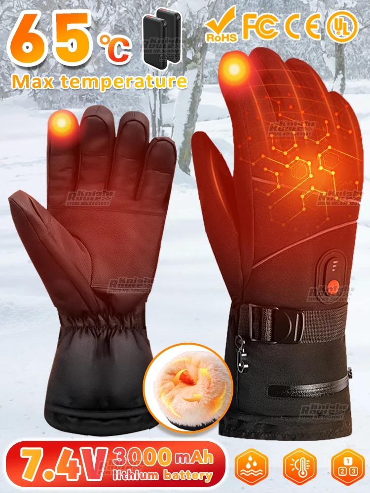 남성용 가열 장갑 USB 충전식, 가열 기능이 있는 겨울 열 장갑, 오토바이 터치스크린 전기 가열 장갑, 스키 장갑