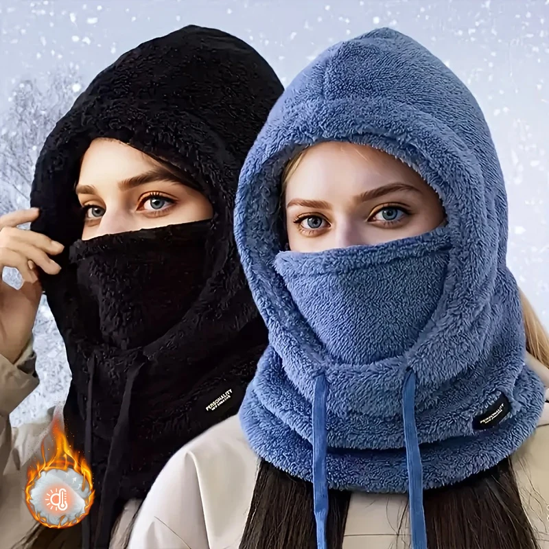 여성&남성용 따뜻한 발라클라바 1개, 겨울 모자 셰르파 후드 스키 페이스 커버, 방풍 퍼리, 조절 가능한 후드 캡 스카프