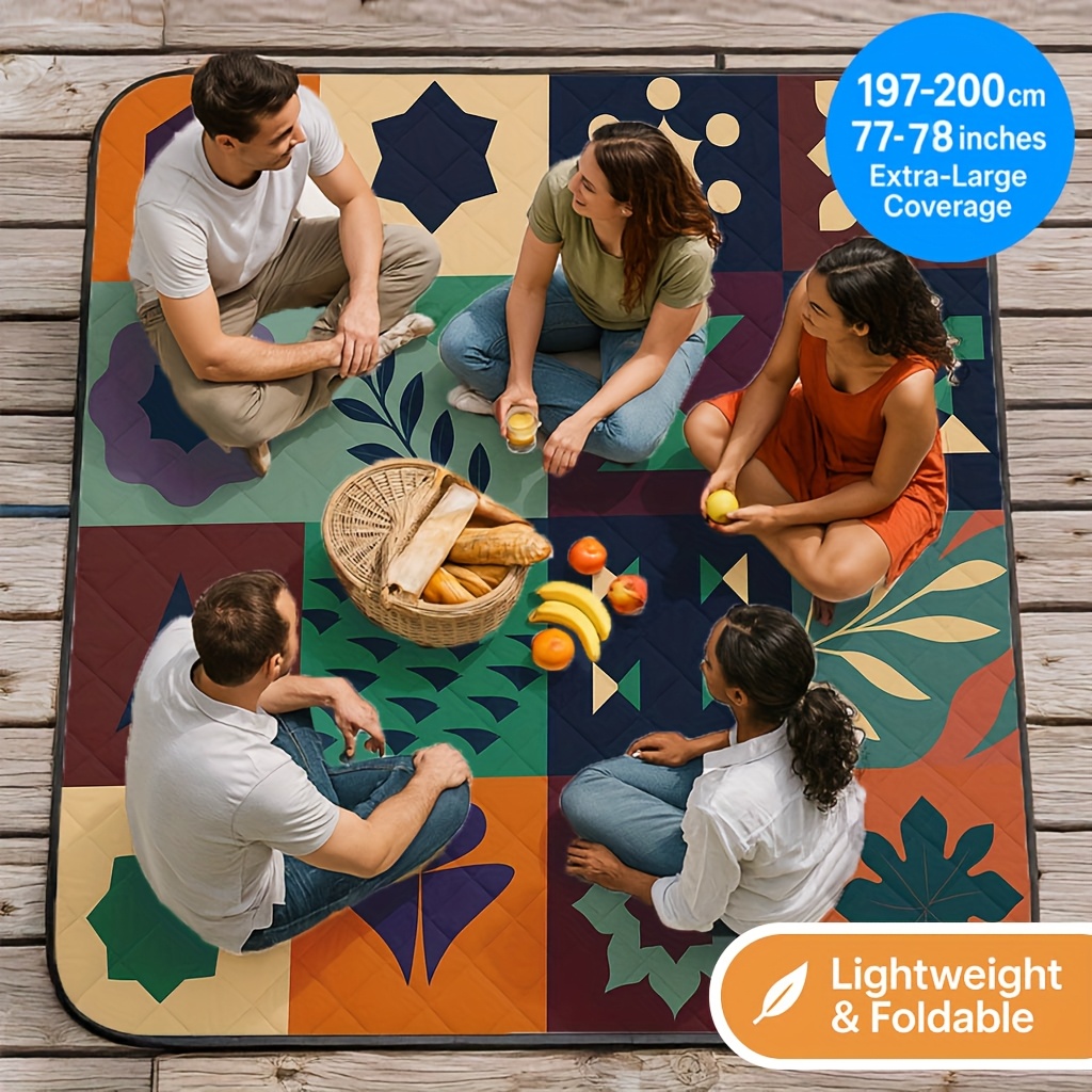 TEMU 4-8인용 초대형 두꺼운 피크닉 매트 - 내구성 강화 3겹 패딩 베이스, 미끄럼 방지 접이식 야외 담요, 캐리 스트랩 포함, 대형 80x80 인치 캠핑·해변·BBQ·가족 모임용, 사계절 휴대용 뒷마당 장식, 파티 테이블 커버, 폴리에스터 소재, 그룹 아웃팅 필수품|캠핑테이블|캠핑매트
