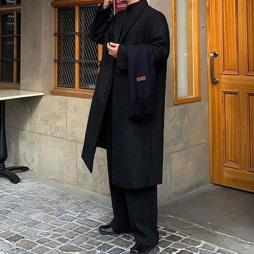 [피팅남]남자 해커 루즈 오버핏 겨울 맥시 울 싱글 롱 코트