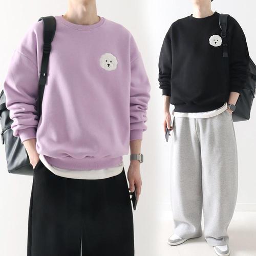 [지지블랙][1+1] 어깨가 넓어보이는 푸들 기모 자수 오버핏 맨투맨 티셔츠 ZZBMT052